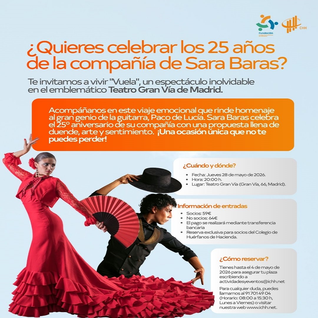 📧 Info: actividadesyeventos@ichh.net.¡Celebremos juntos 25 años de arte flamenco! ✨✨ #SaraBaras #Vuela #CulturaMadrid #ICHH