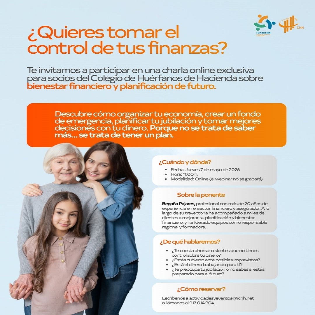 ¿Sientes que el dinero se te escapa entre los dedos? 💸A veces no es cuestión de ganar más, sino de tener un plan.El próximo 7 de mayo a las 11:00 h celebramos un webinar exclusivo para socios del Colegio de Huérfanos de Hacienda donde hablaremos de todo lo que nadie te enseñó sobre tus finanzas:✅ Cómo organizar tu economía