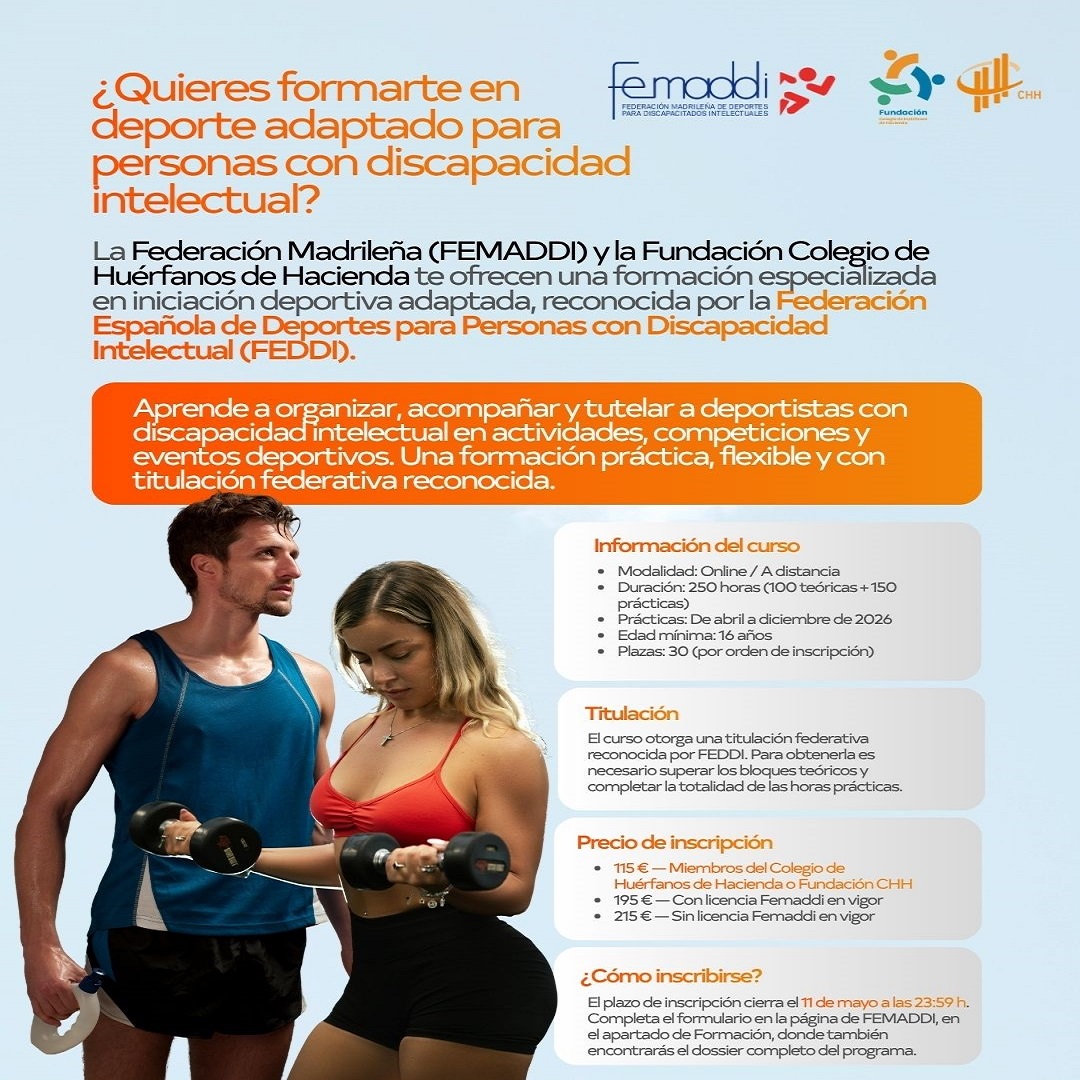 La Federación Madrileña (FEMADDI) y la Fundación Colegio de Huérfanos de Hacienda lanzan una formación especializada en iniciación deportiva adaptada.